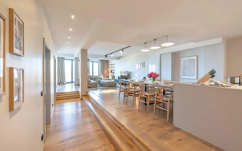 Ein besonderes Extra ist der private Wellness- und Fitnessbereich inklusive Sauna, der für Erholung sorgt. Für Unterhaltung steht zudem ein Heimkino mit hochwertigem Surround-Sound-System bereit, ideal für gemütliche Filmabende.
