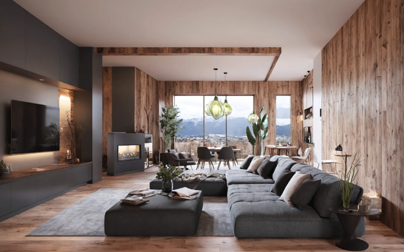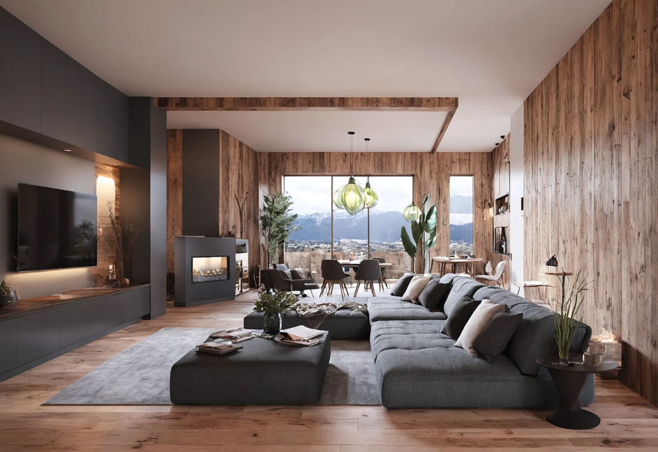 Im Inneren trifft moderne Großzügigkeit auf echte Wohlfühlmomente. Der offene Wohnbereich mit Kamin schafft eine warme, entspannte Atmosphäre – perfekt für ruhige Abende nach einem Tag in den Bergen. Die private Sauna macht das Zuhause zu einem Rückzugsort, der nicht nur stilvoll ist, sondern sich auch im Alltag besonders anfühlt.