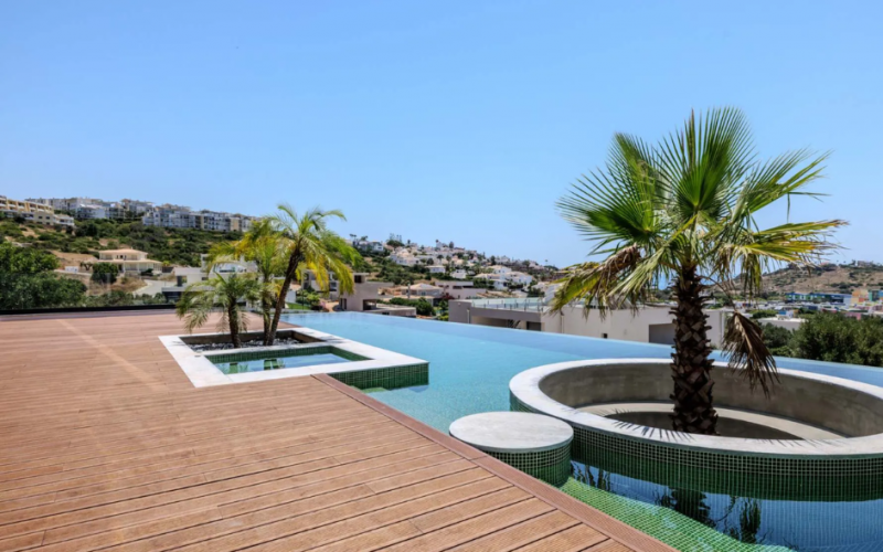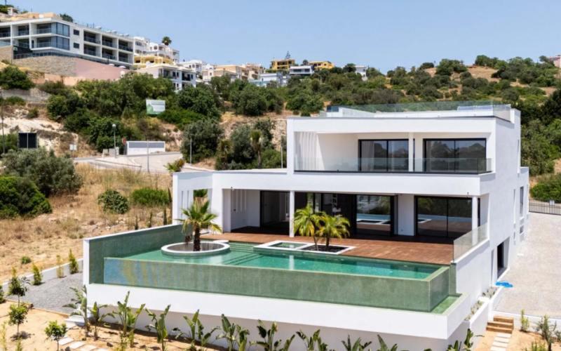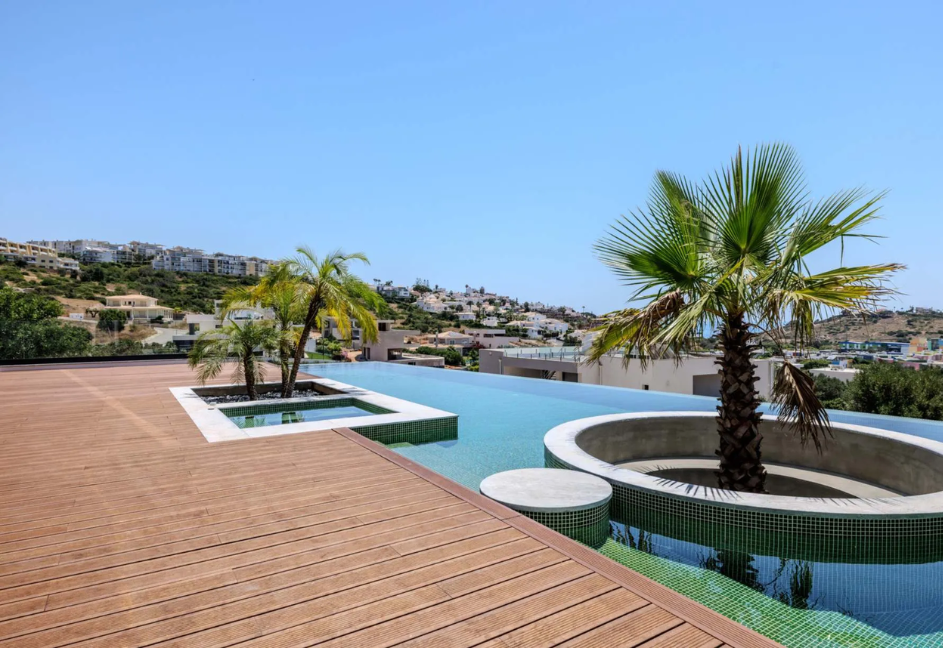 Sonne, Weite, Algarve-Gefühl: Villa Albufeira verbindet moderne Eleganz mit der entspannten Leichtigkeit des Südens. In erhöhter Hanglage gelegen, eröffnet sie ein Wohngefühl, das sofort ankommen lässt – mit weitem Blick, viel Privatsphäre und Außenbereichen, die wie gemacht sind für lange Tage unter freiem Himmel. Großzügige Sonnenterrassen, ein gepflegter Garten und der beheizbare Infinity-Pool mit Whirlpool schaffen den perfekten Rahmen für ruhige Stunden, gesellige Abende und echte Auszeiten.