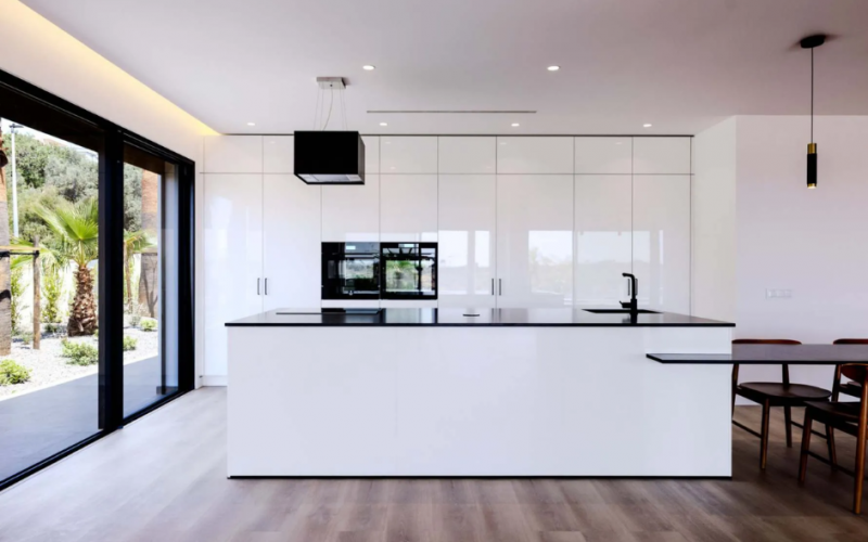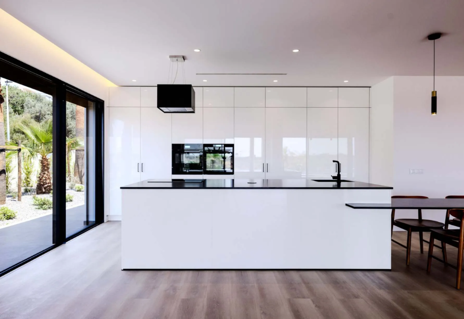 Auch im Inneren setzt sich dieses Gefühl nahtlos fort. Bodentiefe Fenster holen Licht und Landschaft ins Haus, während das offene Wohnkonzept ein stilvolles Inside-Out-Living ermöglicht. Die Dachterrasse mit Lounge wird schnell zum Lieblingsplatz für laue Sommerabende mit Panorama, und der Fitness- und Wellnessbereich mit Sauna ergänzt das Zuhause um einen Rückzugsort für Erholung und neue Energie. So entsteht eine Villa, die großzügig, hochwertig und zugleich angenehm entspannt wirkt – ideal für Familie, Freunde und alle, die das Besondere suchen.